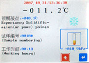技術(shù)參數(shù): 測(cè)量范圍:10~-65℃ 凝點(diǎn)重復(fù)性:±0.5℃ 傾點(diǎn)重復(fù)性:±2℃ 制冷速度:10min>40℃ 電源電壓:AC220V±10% 頻率:50Hz±5%